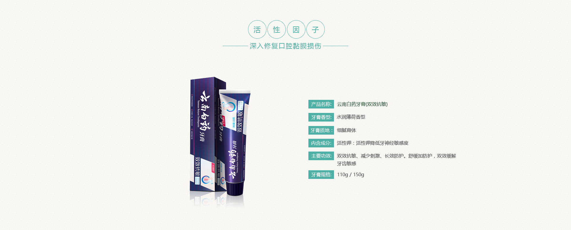 ◆双效抗敏、减少刺激、长效防护。舒缓加防护,双效缓解牙齿敏感