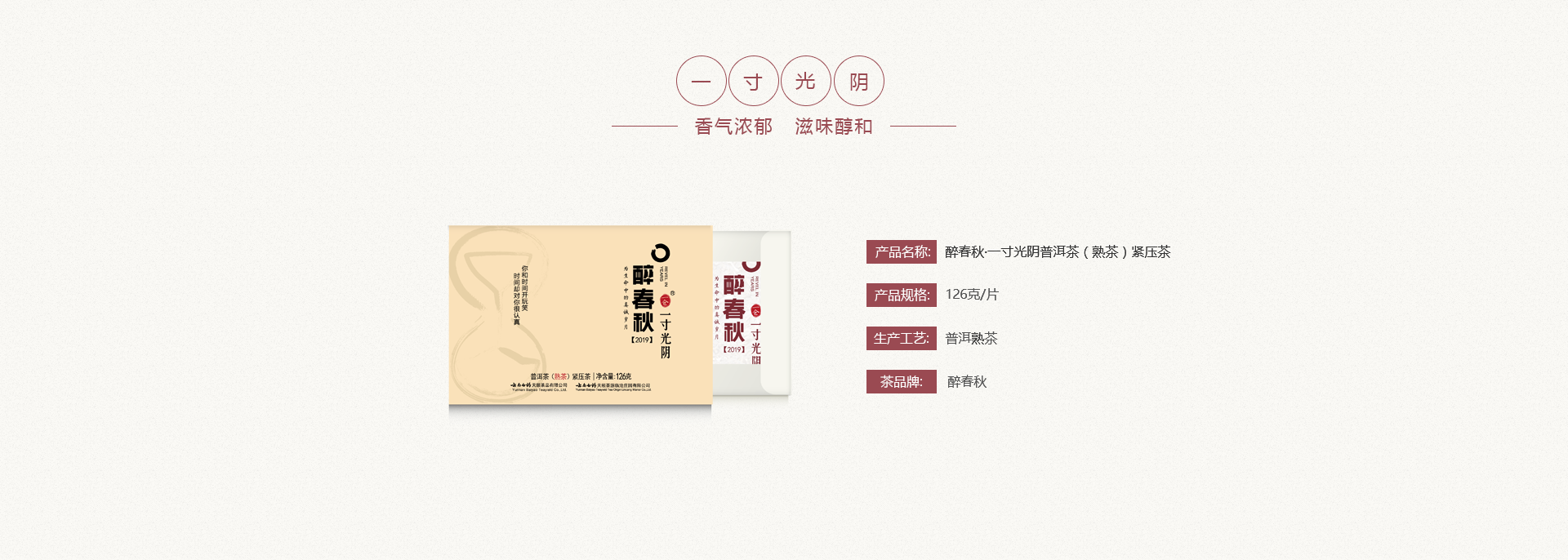 醉春秋·一寸光阴普洱茶(熟茶)紧压茶 (126克)