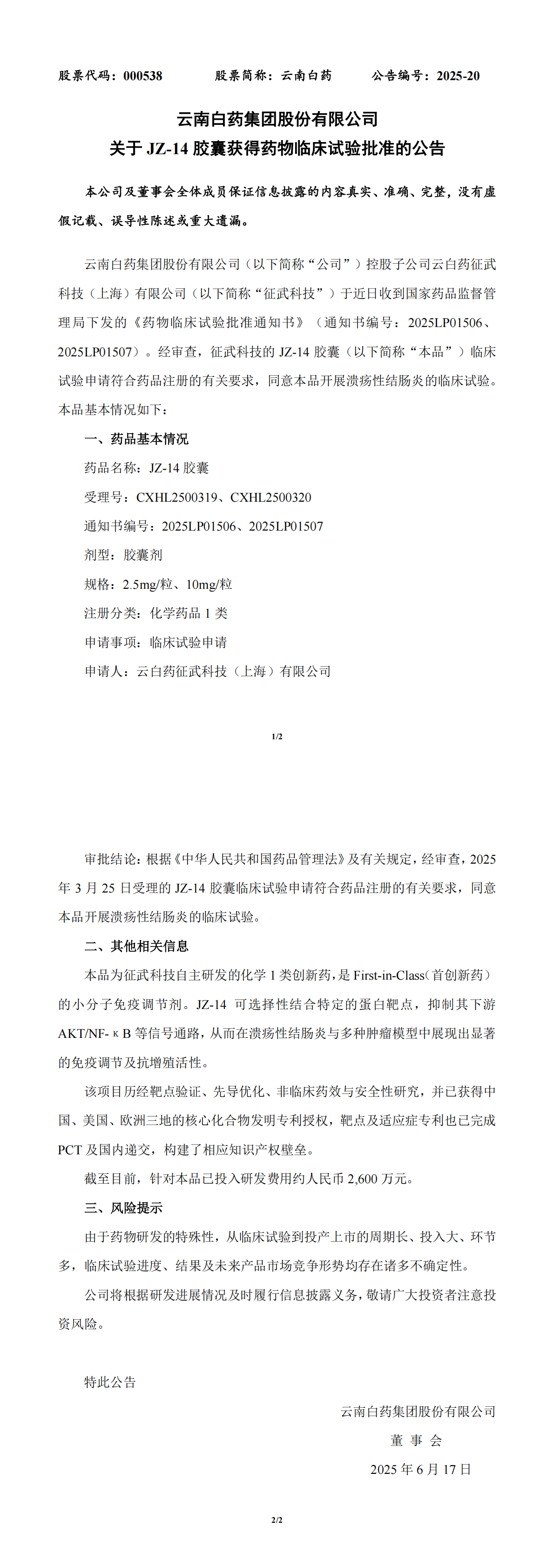 黄色动漫 关于 JZ-14 胶囊获得药物临床试验批准的公告